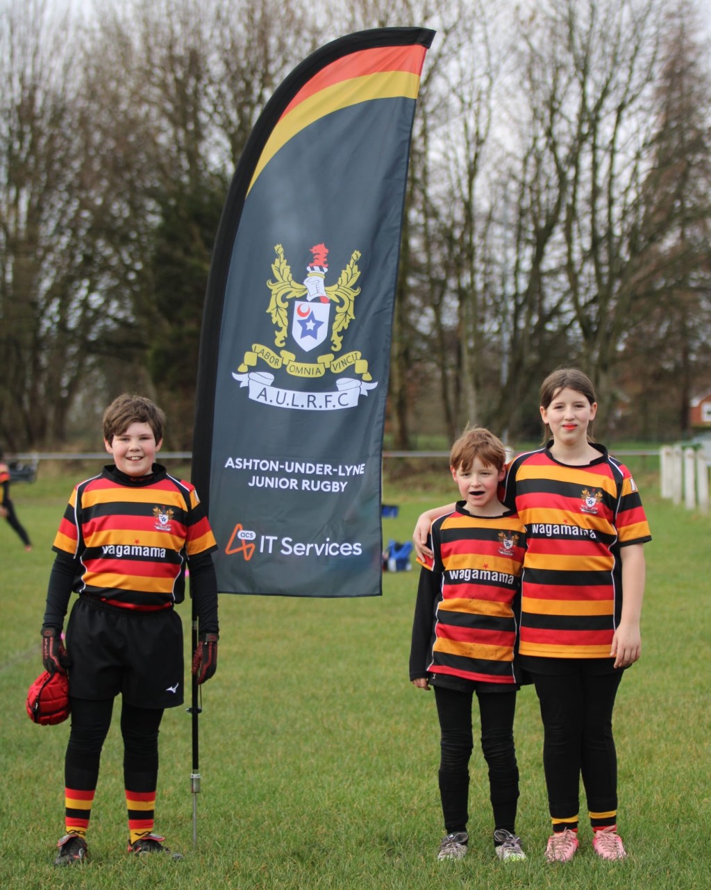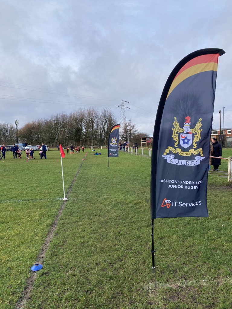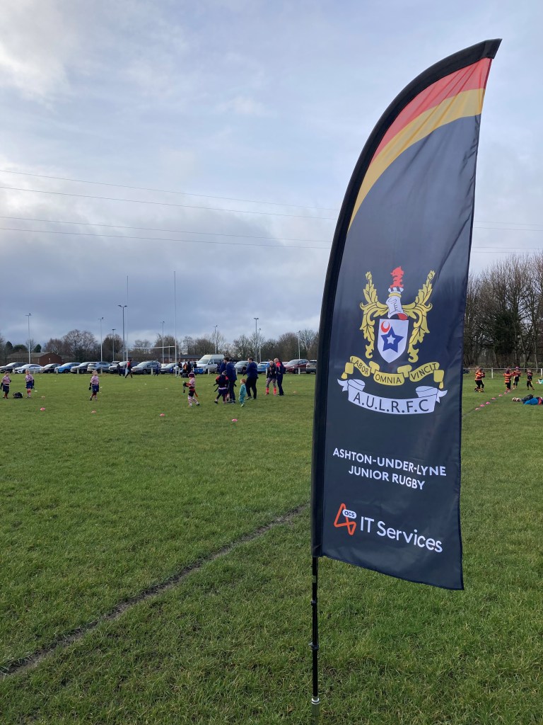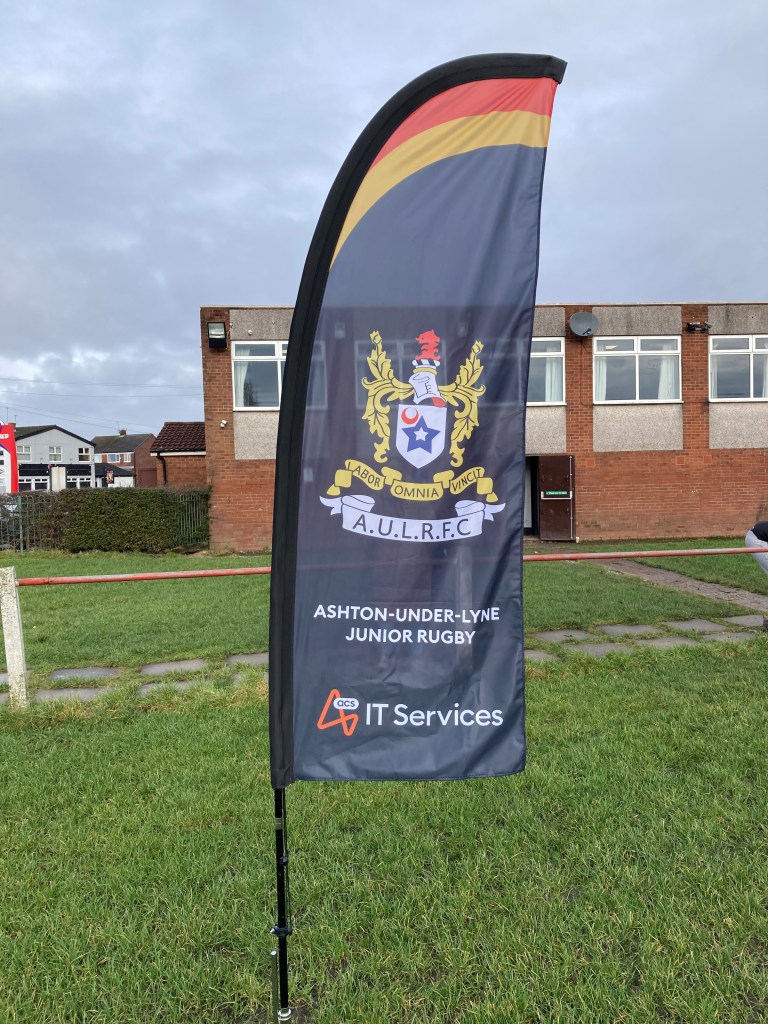 Our u11’s played at home to Dukinfield on Sunday morning, thrilled to be on the 1st team pitch! To mark the occasion, flying our NEW pitch side banner flags sponsored by: ACS IT Services.These are perfect for welcoming visiting teams to Ashton Juniors and also for base camp at our planned summer rugby festivals! Many thanks to ACS IT Services for their continued support. Fresh horses for the troops!
